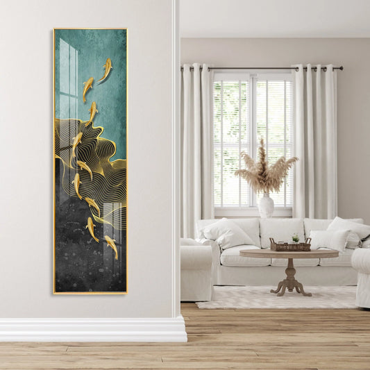 9 Golden Koi Fishes Luxury Crystal Vertical Wall Art