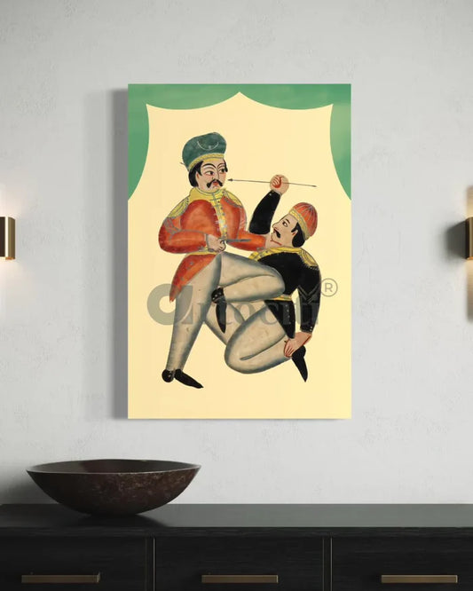 A British company master in a duet with supposedly a native Kalighat painting Canvas Giclee Print