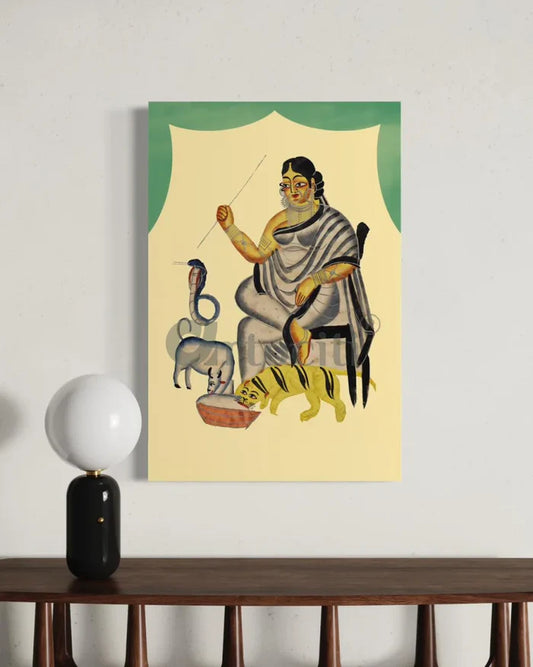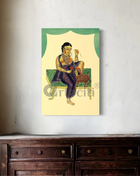 A Woman Feeding Her Pets Kalighat Painting Canvas Giclee Print