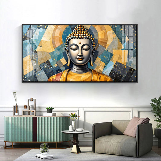 Abstract Buddha Face Portrait Premium Acrylic Horizontal Wall Art