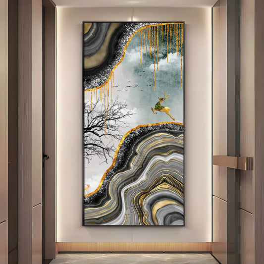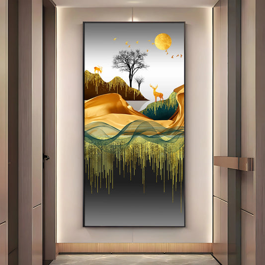 Abstract Golden Art Of Deer Luxury Crystal Vertical Wall Art