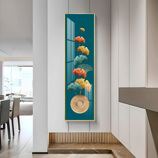 Abstract Golden Ginkgo Leaf Premium Acrylic Vertical Wall Art