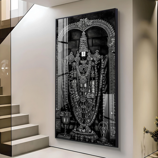 Tirupati Balaji In Charcoal & Graphite Finish Premium Acrylic Vertical Wall Art