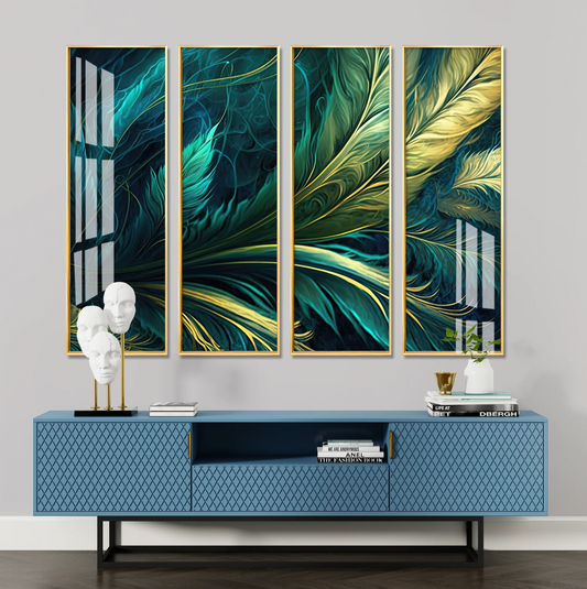 Tropical Leaves Premium Acrylic Vertical Wall Art (set of 4)