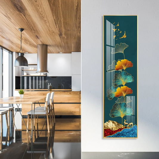 Two Deer On Ginkgo Leaf Vertical Luxury Crystal Vertical Wall Art