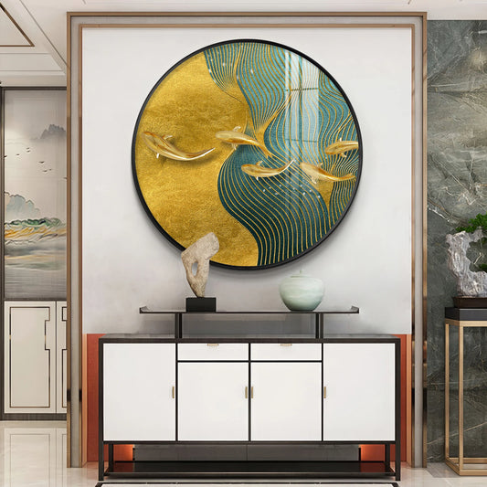 Aqua Gold Premium Acrylic Round Wall Art