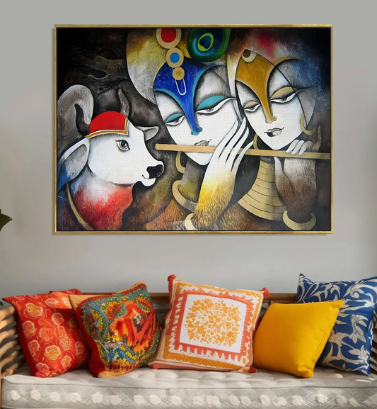 YF Traditional Lotus Cow Pichwai Crystal Painting