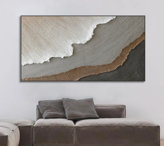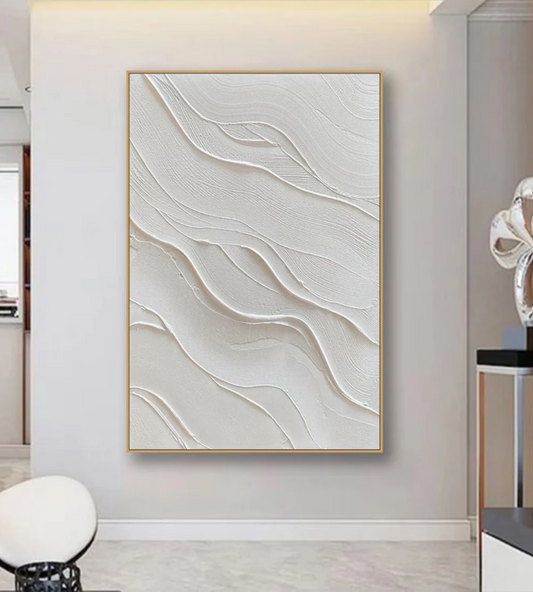 AWA - 3D White Minimalist Beach Painting Textured Wall Art