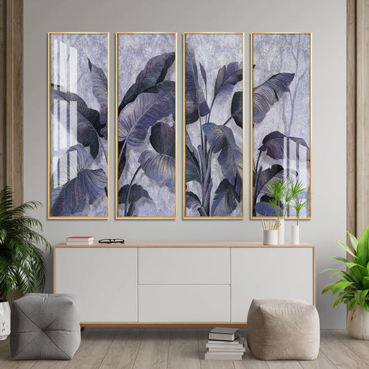 Banana Leaves Premium Acrylic Vertical Wall Art (set of 4)