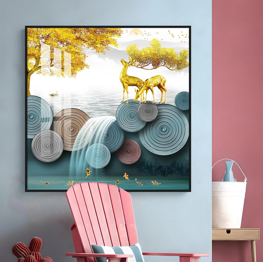 Golden Fortune Deer Premium Acrylic Square Wall Art