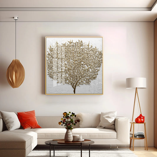 Golden Tropical Leaf Luxury Crystal Square Wall Art