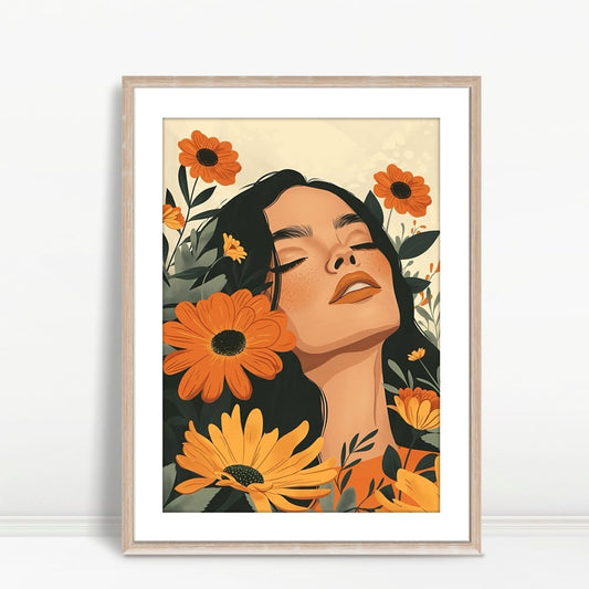 YF Woman Surrounded by Orange Wildflowers