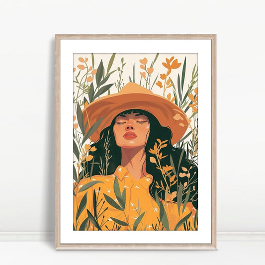 YF Woman in Yellow Hat Among Wildflowers