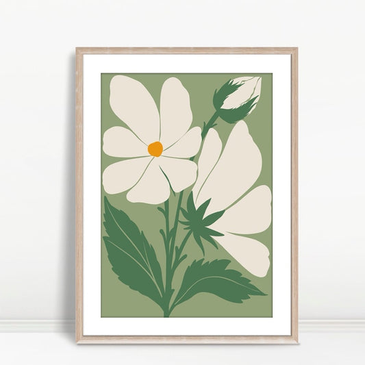 YF Playful Boho Daisies Green Background