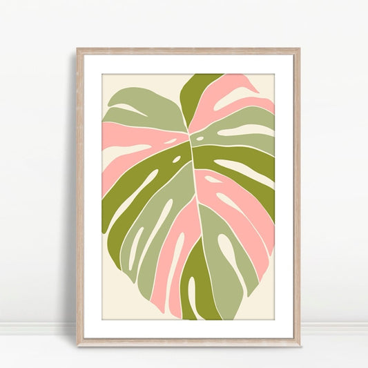 YF Pink Green Monstera Boho Leaf