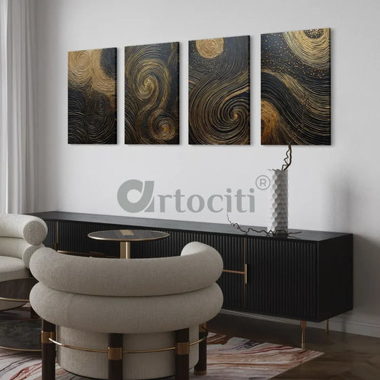 Golden Elegance - Set of 4 Modern Abstract Canvas Print