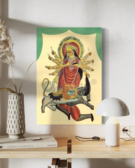 Durga and Mahishasura Kalighat Painting Canvas Giclee Print