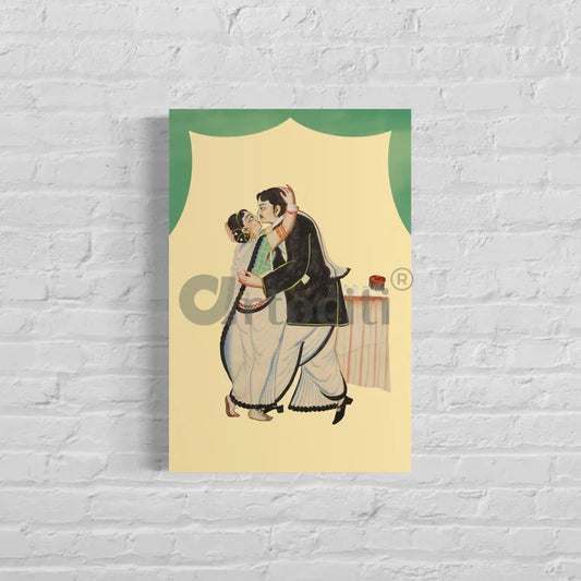 Man and Woman in an Intimate Embrace Kalighat Painting Canvas Giclee Print