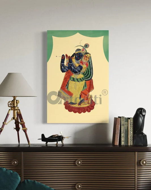 Radha and Krishna Kalighat Painting Canvas Giclee Print