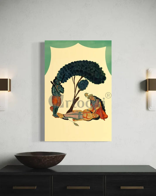 Savitri begs Yama not to take Satyavan, a scene from the Mahabharata Kalighat Painting Canvas Giclee Print