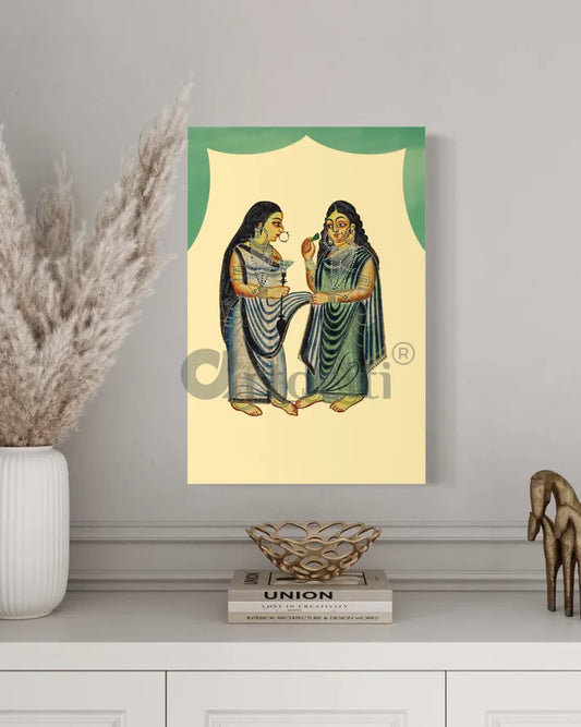 Woman Indulging in Hookah and Betel Leaves Kalighat Painting Canvas Giclee Print