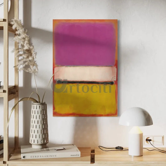 White in Center, Yellow, Pink and Lavender on Rose Abstract Art By Mark Rothko