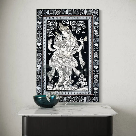 Black & White Radha Krishna Prem Milan Pattachitra Painting Canvas Giclee Print