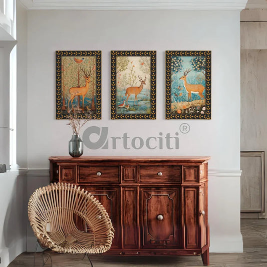Deer Trio - Graceful Vintage Canvas Prints Set of 3