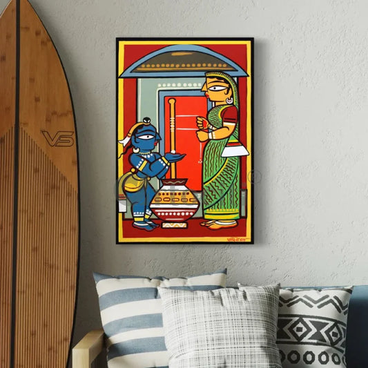 Bal Krishna With Yashoda by Jamini Roy Painting Canvas Giclee Print Kalighat Painting