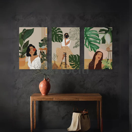 Boho Beauty 3 Ladies in Green Set of 3 Canvas Prints