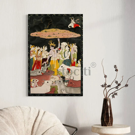 Krishna Lifting the Mountain Govardhana Pahari Canvas Giclee Print