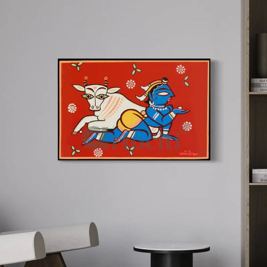 Krishna the Cowherd by Jamini Roy Painting Kalighat Painting