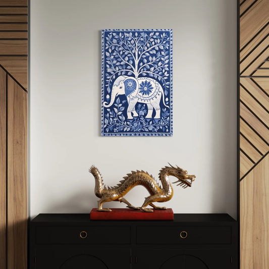 Blue Indian Elephant Kalamkari Art In Premium Canvas Print