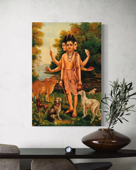 Dattatreya With His Four Dogs And Cow By Raja Ravi Varma Famous Canvas Painting