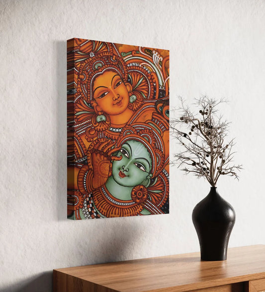Colorful Kerala Mural Krishna Radha Canvas Painting