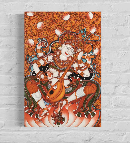 Goddess Saraswati Sitar Art: Vibrant Kerala Mural Canvas