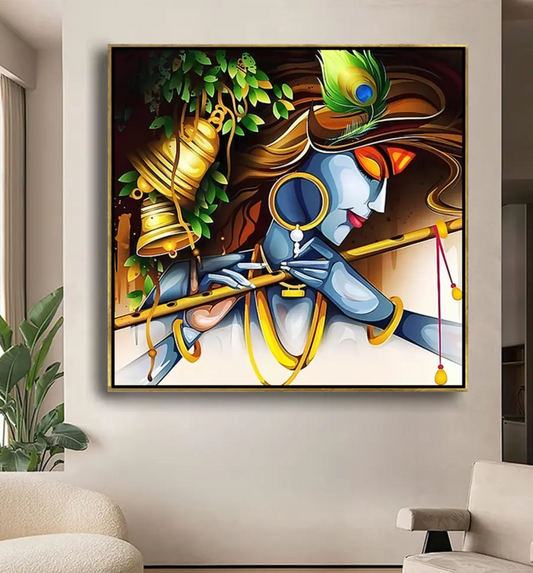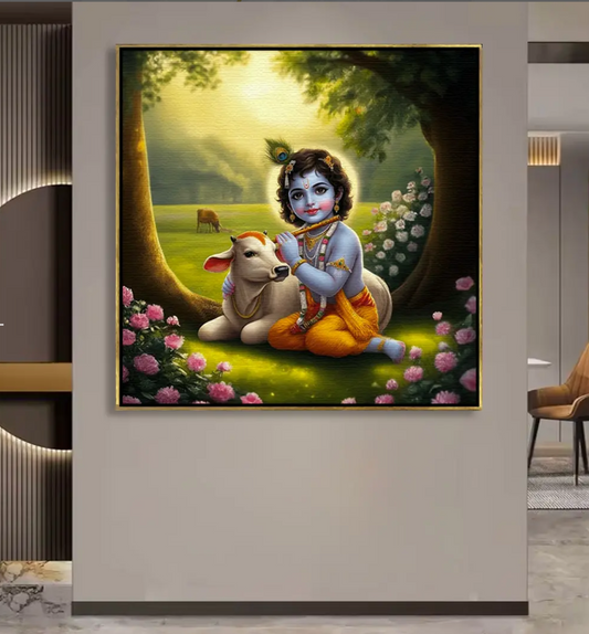 YF Traditional Ethnic Lord Krishna Canvas Painting
