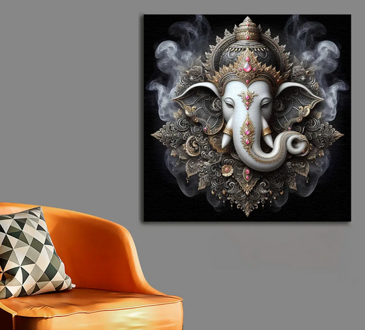 YF Majestic Look Ganesha Canvas Painting