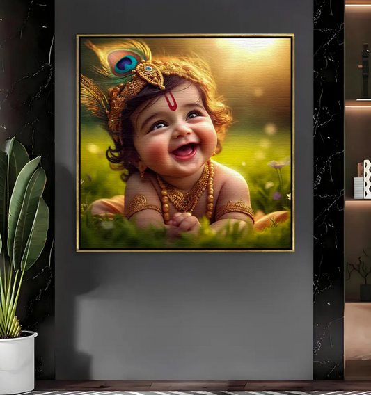 YF Joy of Happiness Baby Krishna Canvas Painting