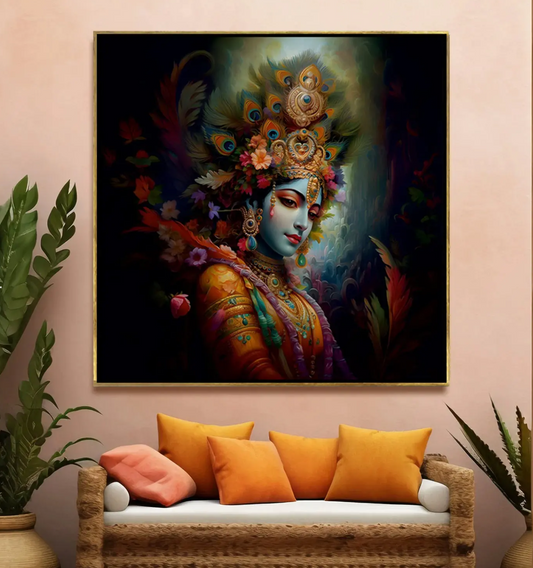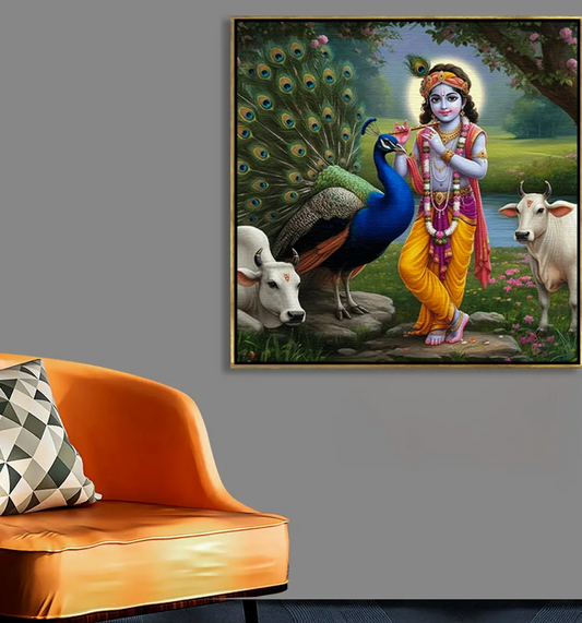 YF Krishna Playing Flute in Vrindavan Canvas Painting