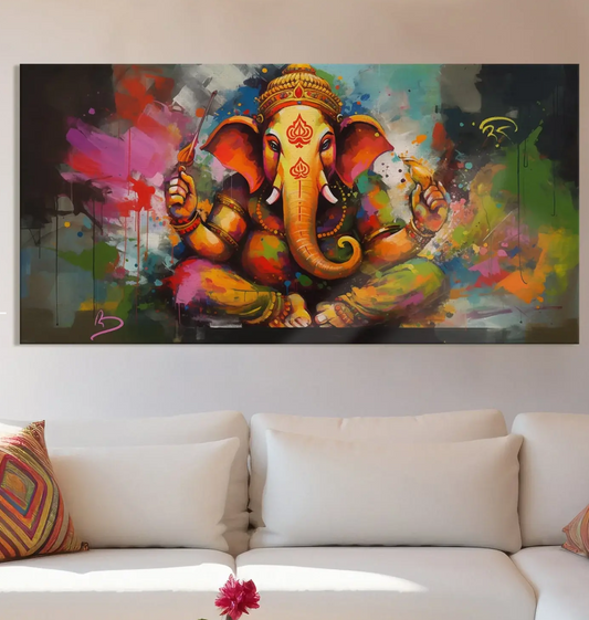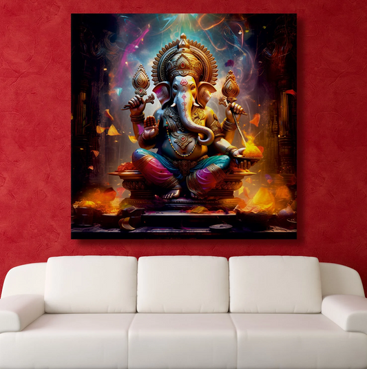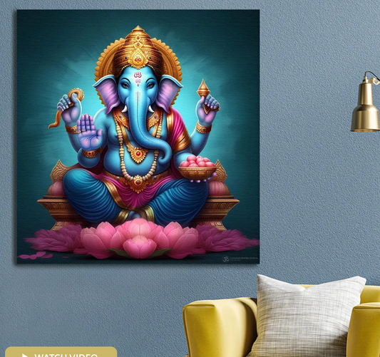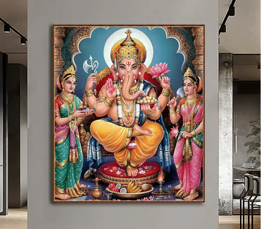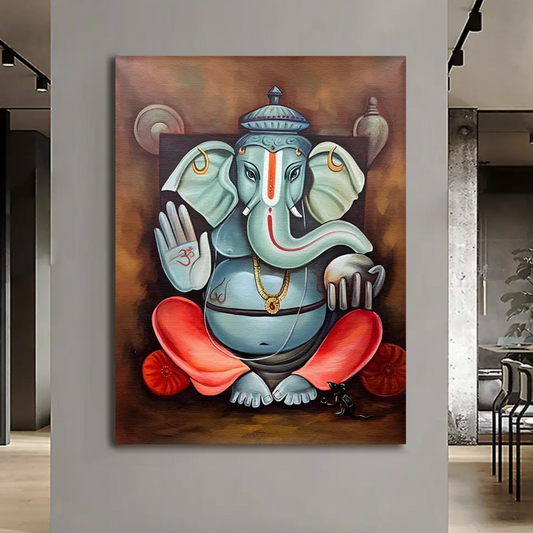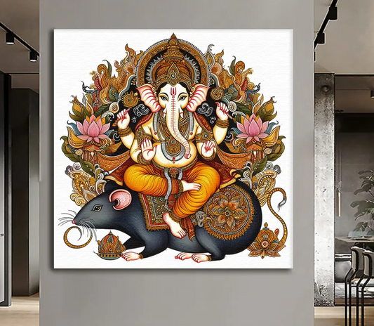 YF Ganpati Ji writing The Mahabharata Canvas Painting