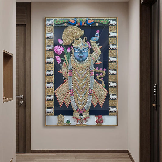 YF Eternal Grace Shreenathji Luxury Crystal Glass Painting