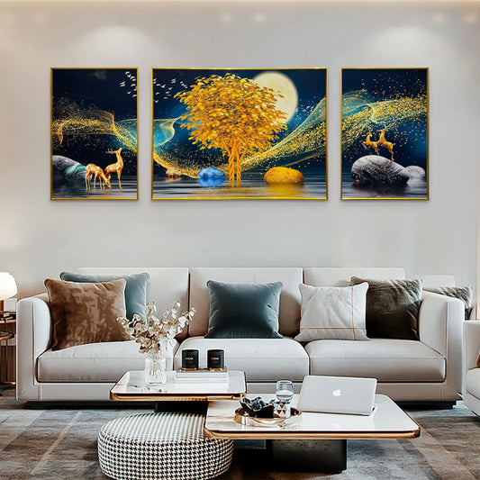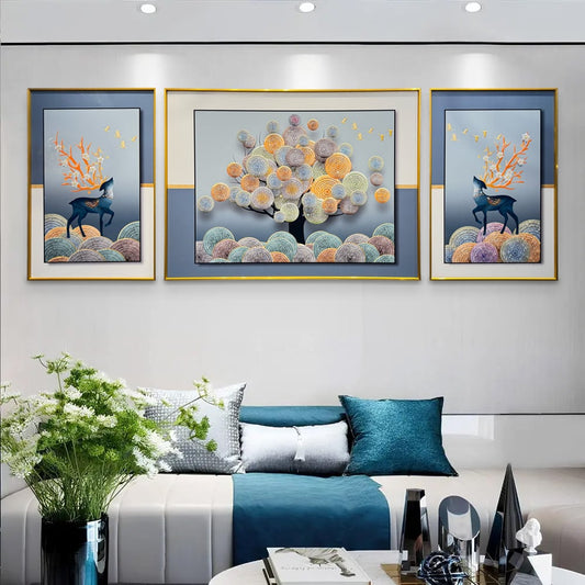 YF Eternal Tree of Life with Deers Crystal Glass Painting β Set of 3