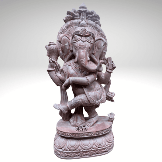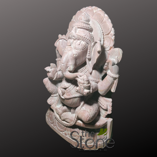 Ganesha Dancing Statue in Pink Stone 15β³