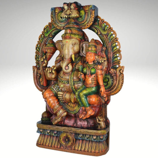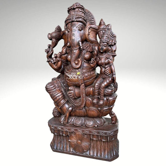 Large Wood Ganesh with Lakshmi Statue 3ft