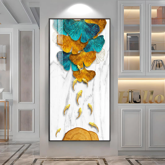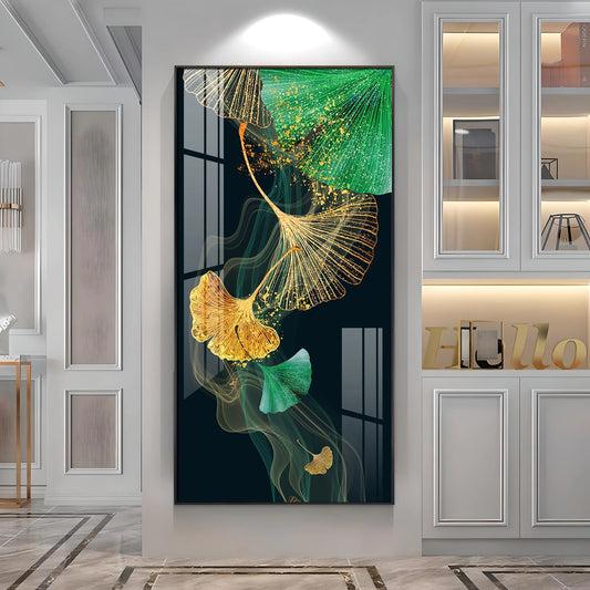 Green Ginkgo Biloba Leaves Luxury Crystal Wall Art
