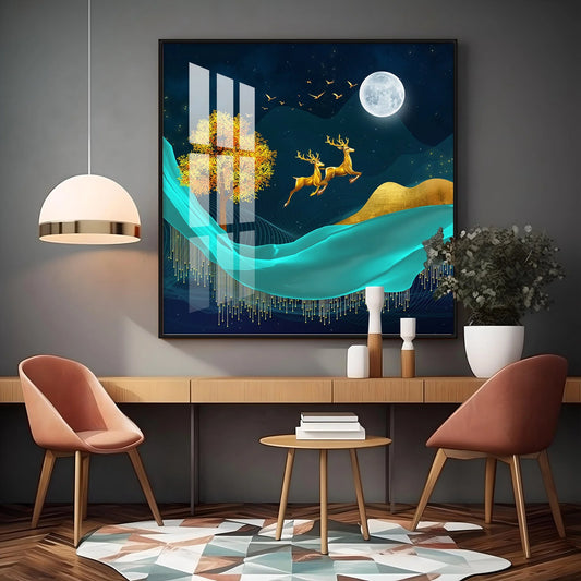 Golden Jolly Deers Luxury Crystal Square Wall Art