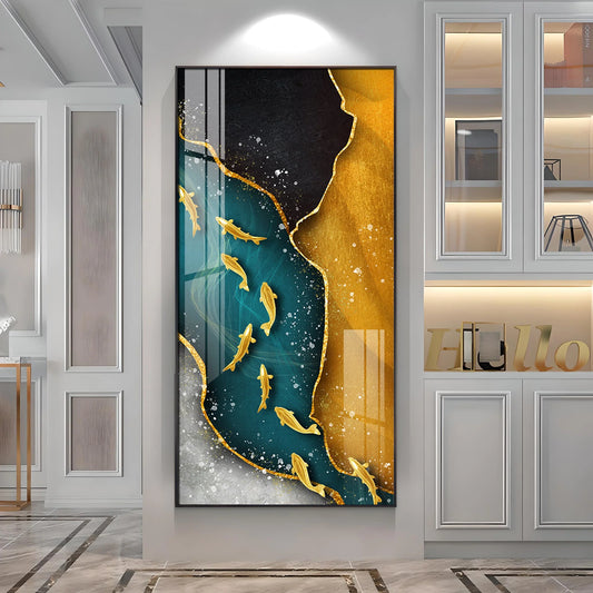 9 Golden Koi Fishes Luxury Crystal Wall Art