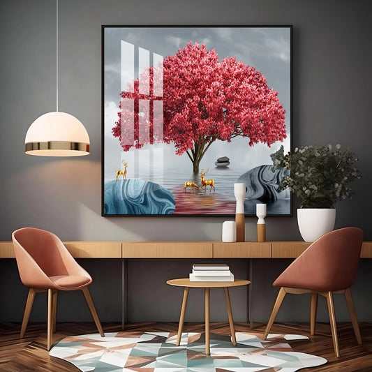 Royal Poinciana Tree Luxury Crystal Square Wall Art