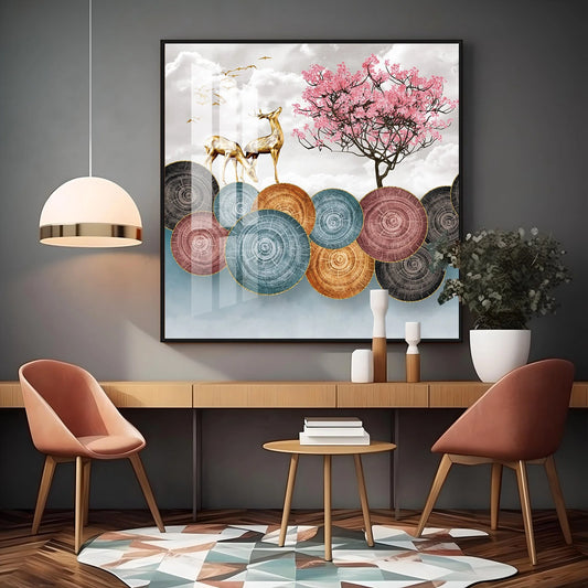 Elegant Golden Deer Chinese Zenstore with Golden Deer Luxury Crystal Wall Art